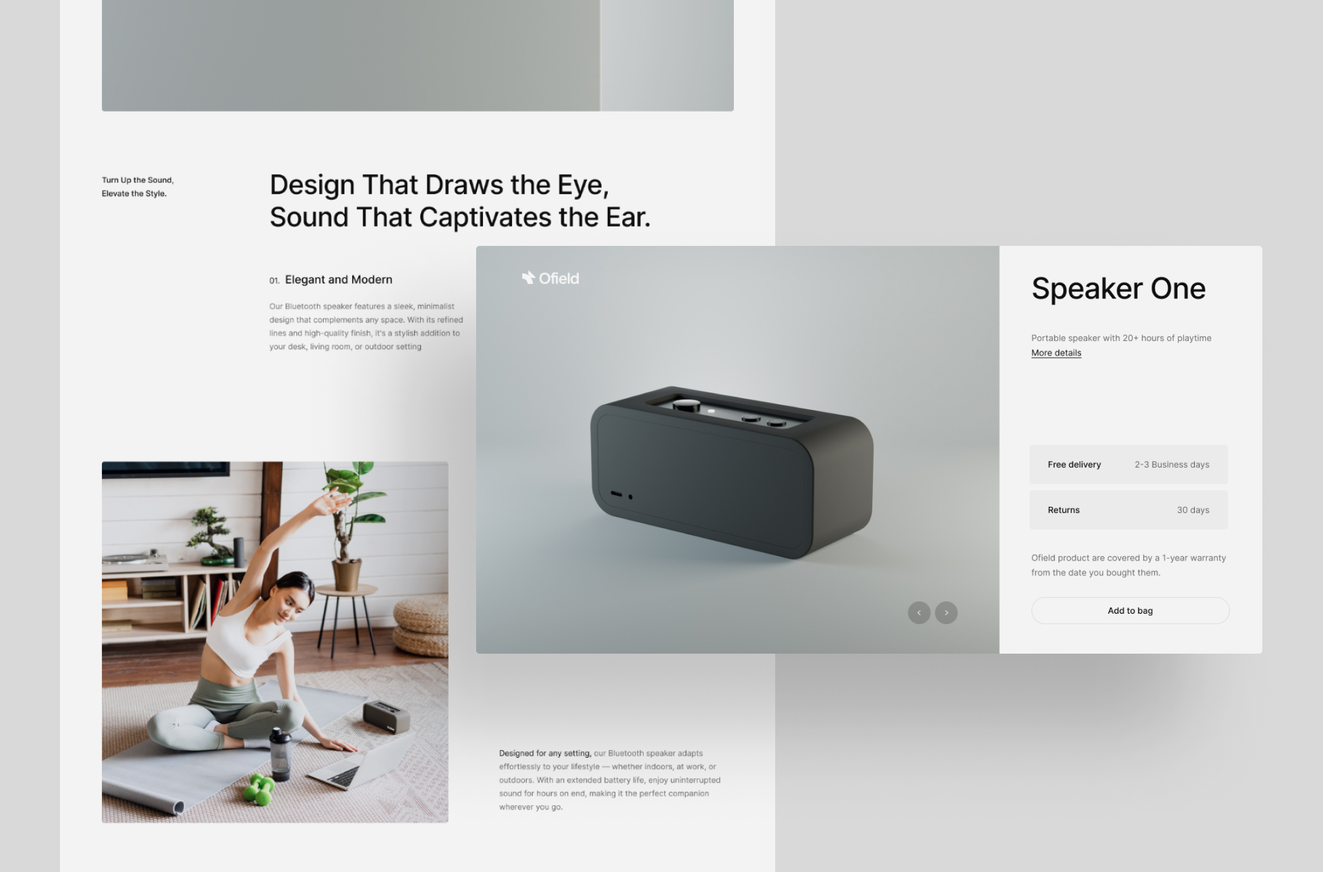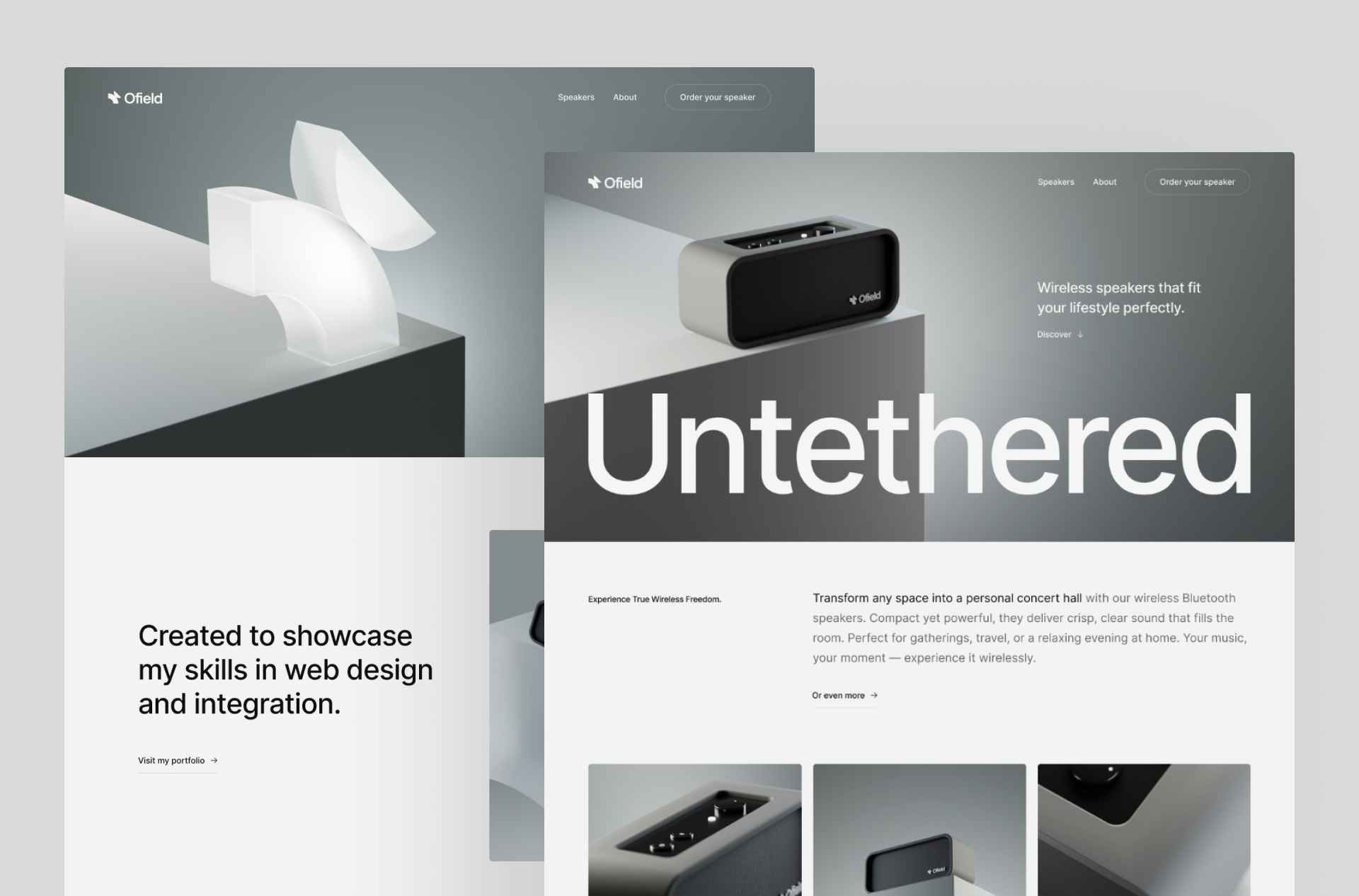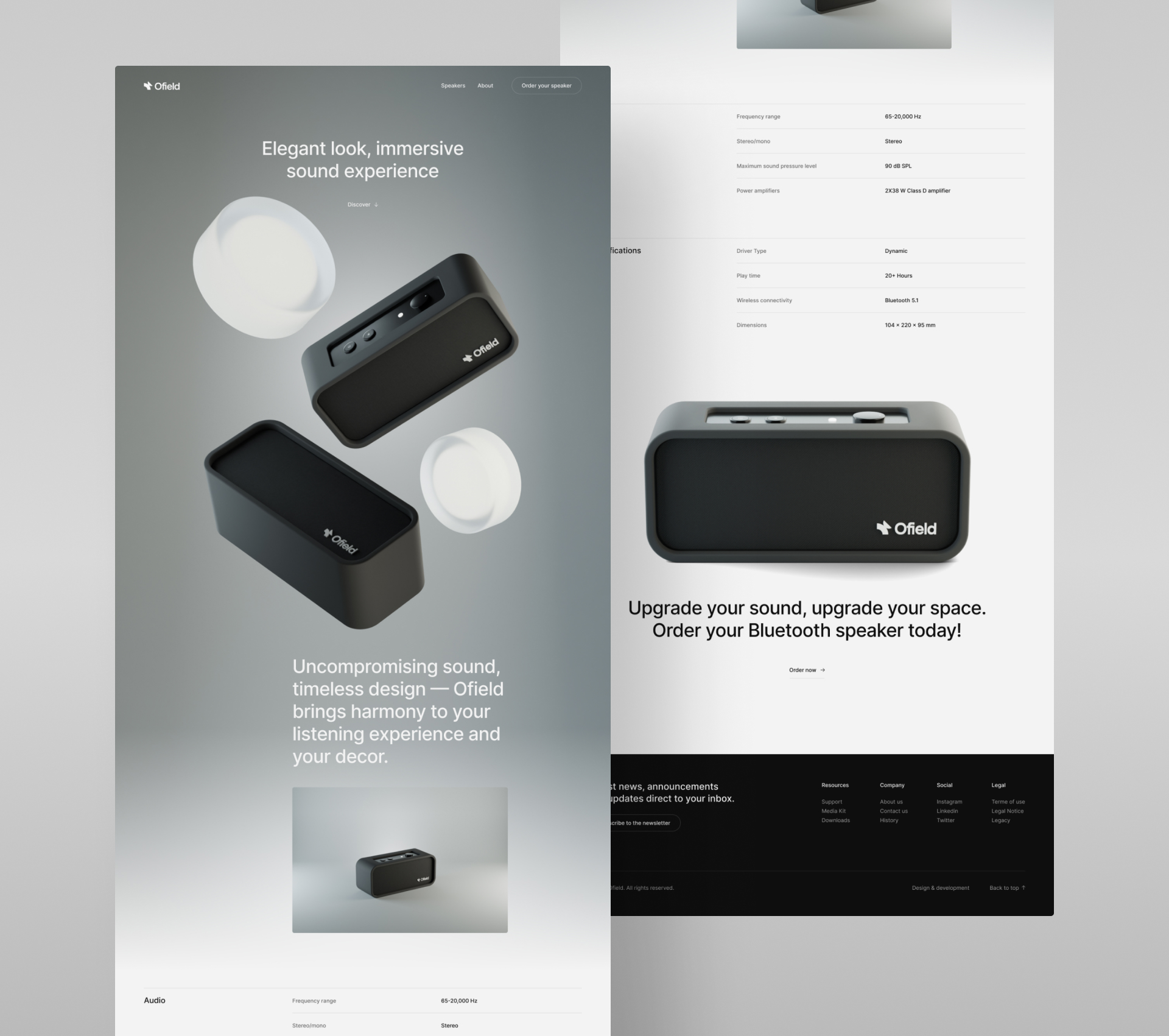 Personal project to create a fictional brand of bluetooth speaker. Creation of a logo, design and modeling of a bluetooth speaker in 3D on Blender, conception and design of a website model on Figma and fromscratch development of the site.